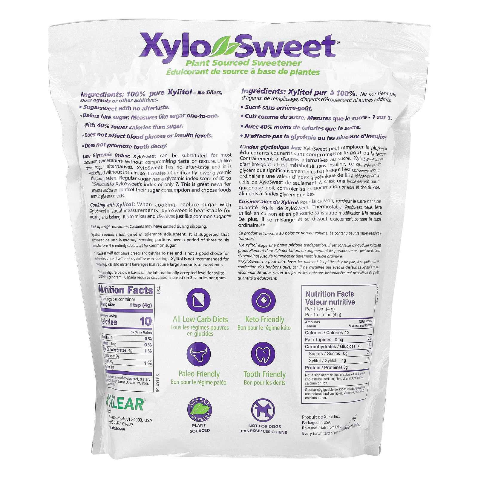 *Xylitol requires a brief period of tolerance adjustment. It is suggested that XyloSweet be used in gradually increasing portions over a period of three to six weeks before it is entirely substituted for common sugar.