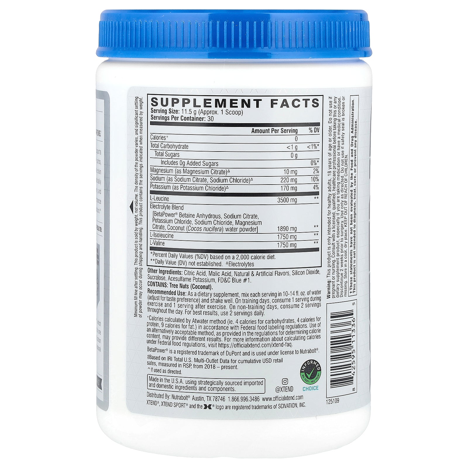 Each daily serving of Xtend Sport™ supports hydration and recovery without sugar, carbs or calories. The 14 grams of branched-chain amino acids (BCAAs) is the recommended daily serving promote muscle repair, recovery, and growth, and the electrolyte & performance hydration blend helps fuel overall hydration.