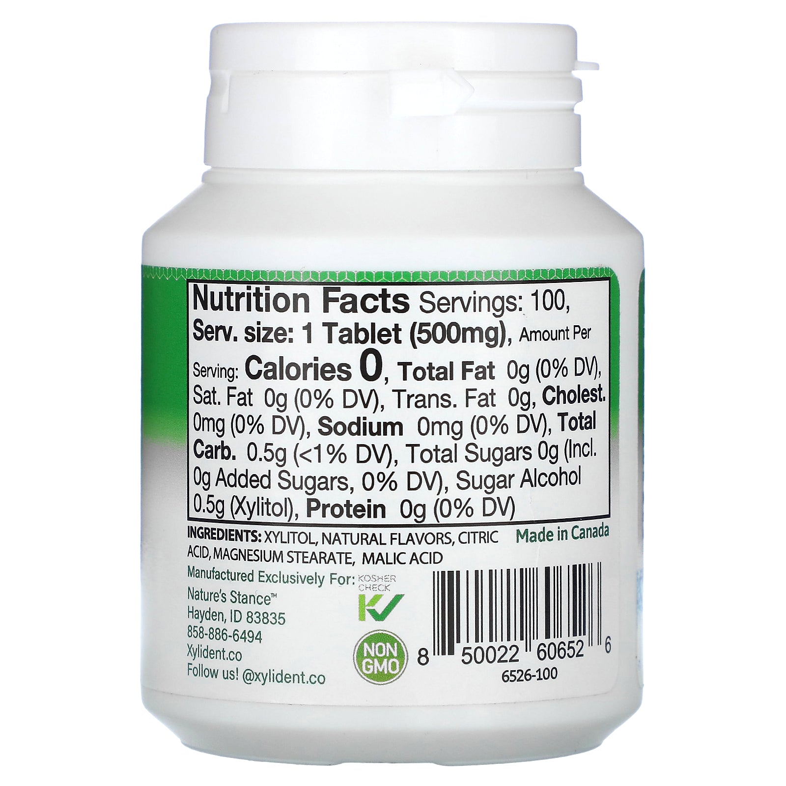| Sugar Alcohol (Xylitol) | 0.5 g | |