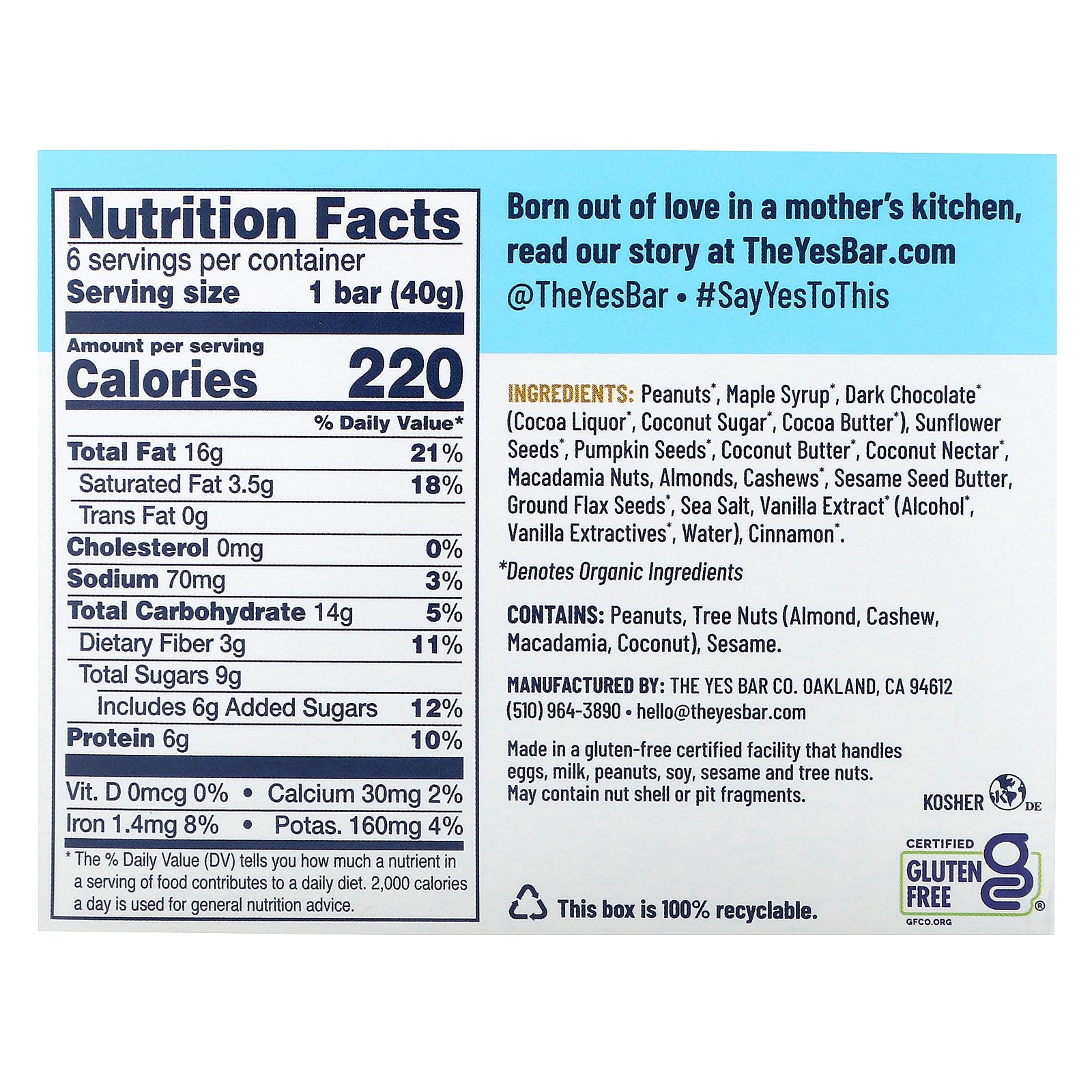 YES Bar® is loaded with nuts, dark chocolate, seeds and spices sourced from the world's finest purveyors and soft-baked to perfection. One bite and you'll taste the difference.
