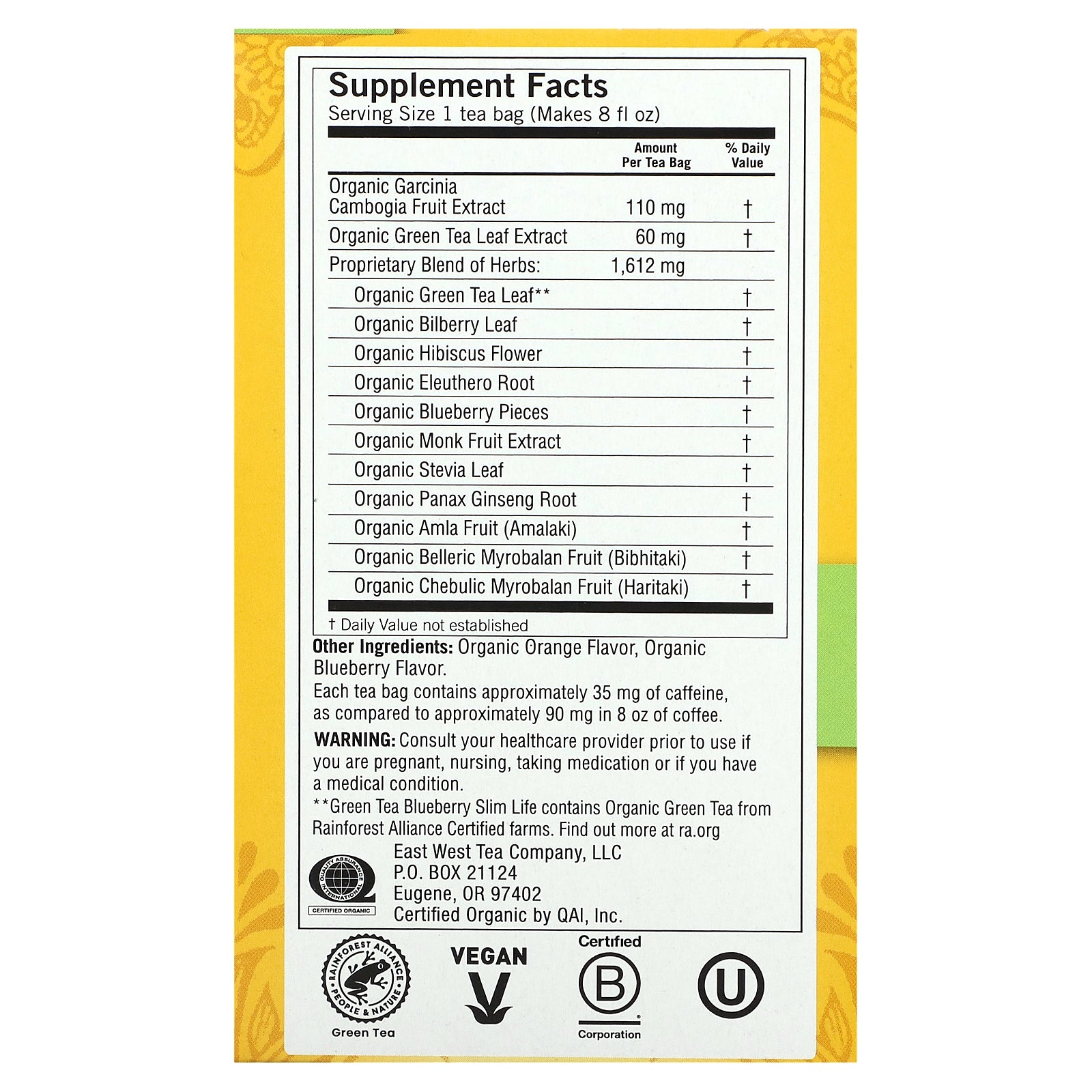 | † Daily Value not established. **Green Tea Blueberry Slim Life contains Organic Green Tea from Rainforest Alliance Certified farms. | ||