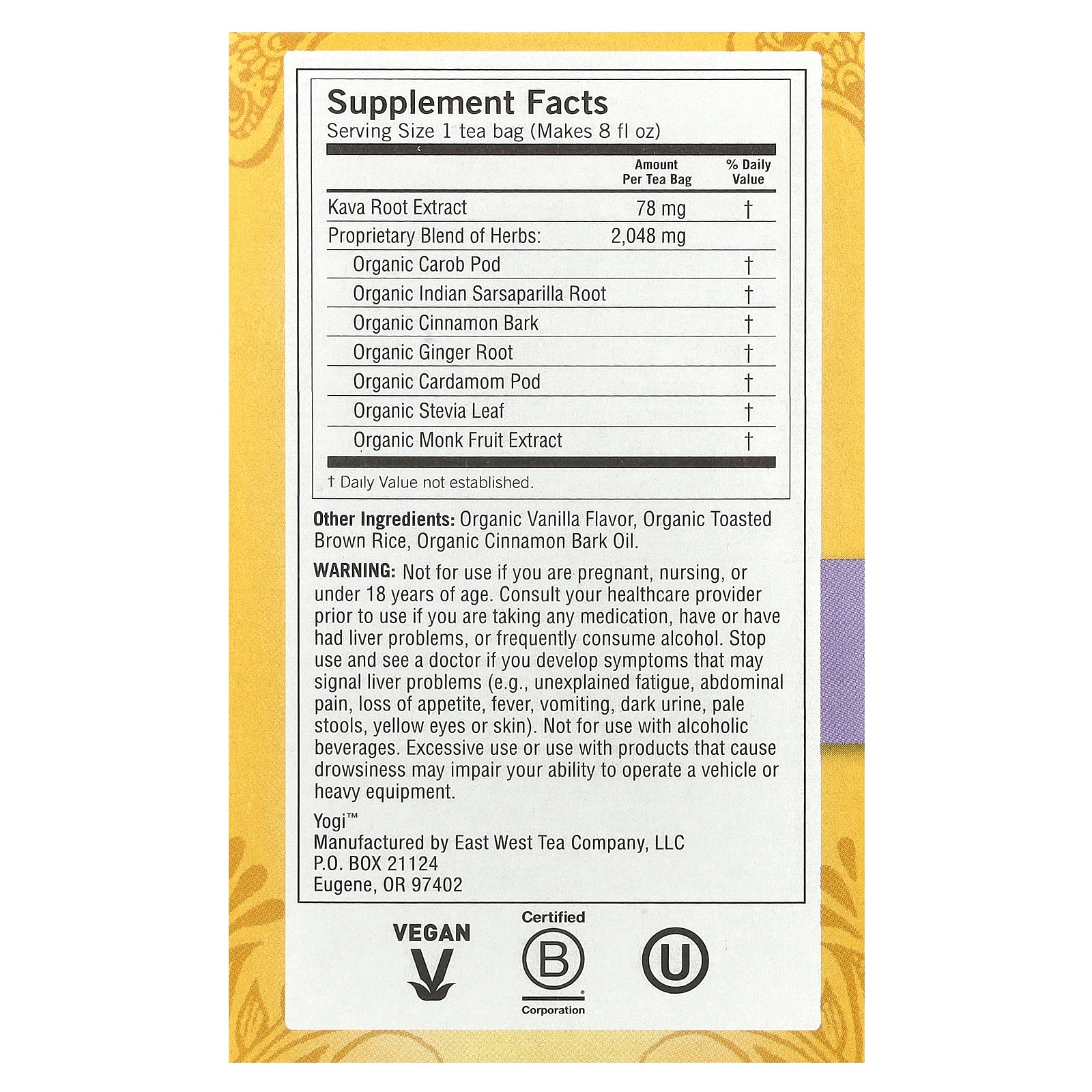 Kava has traditionally been used for its power to calm the body and mind and encourage a good night's sleep. We add Cinnamon and Sarsaparilla for warmth and spice and Carob for rich flavor. Relax and find tranquility with a warm, soothing cup of Kava Stress Relief® tea.