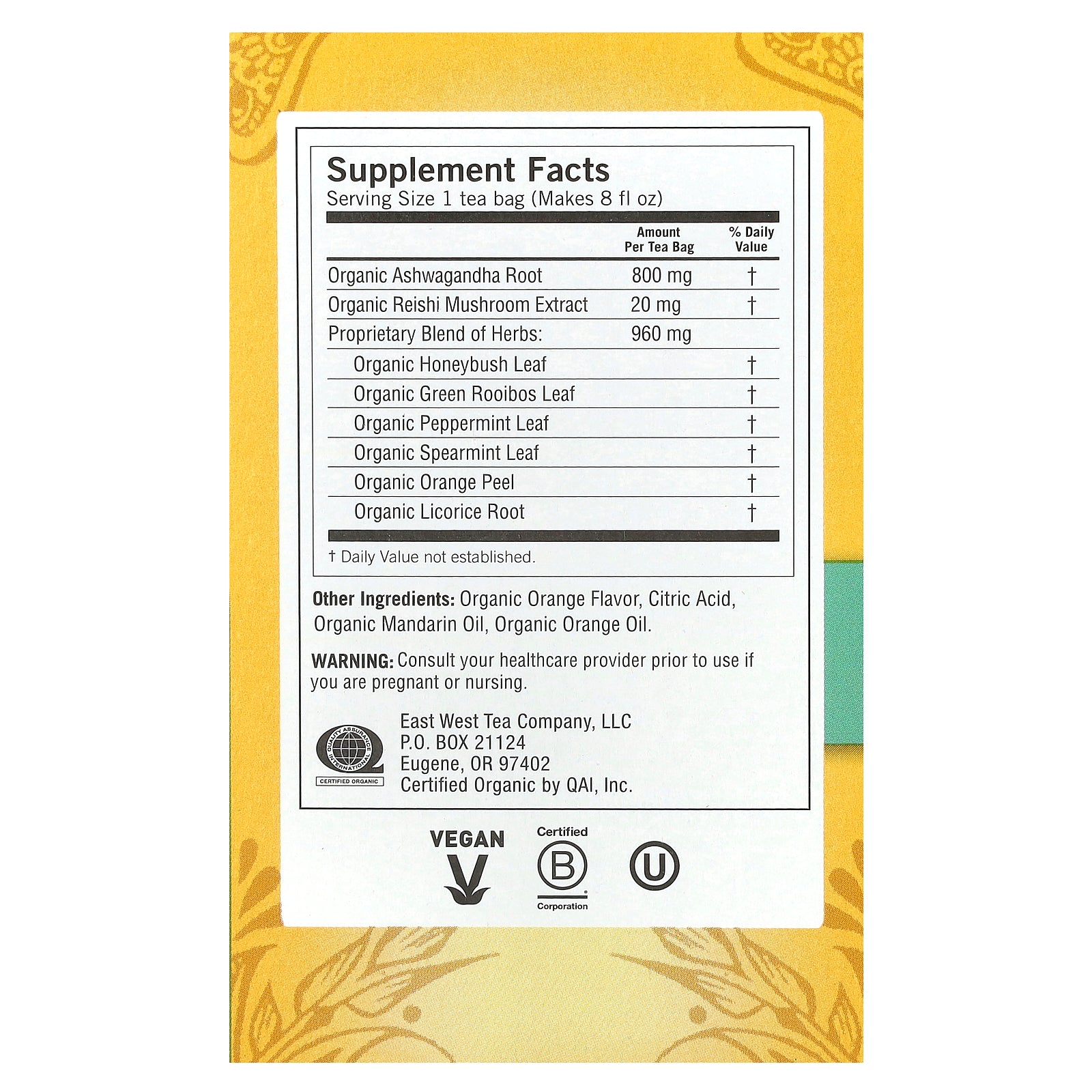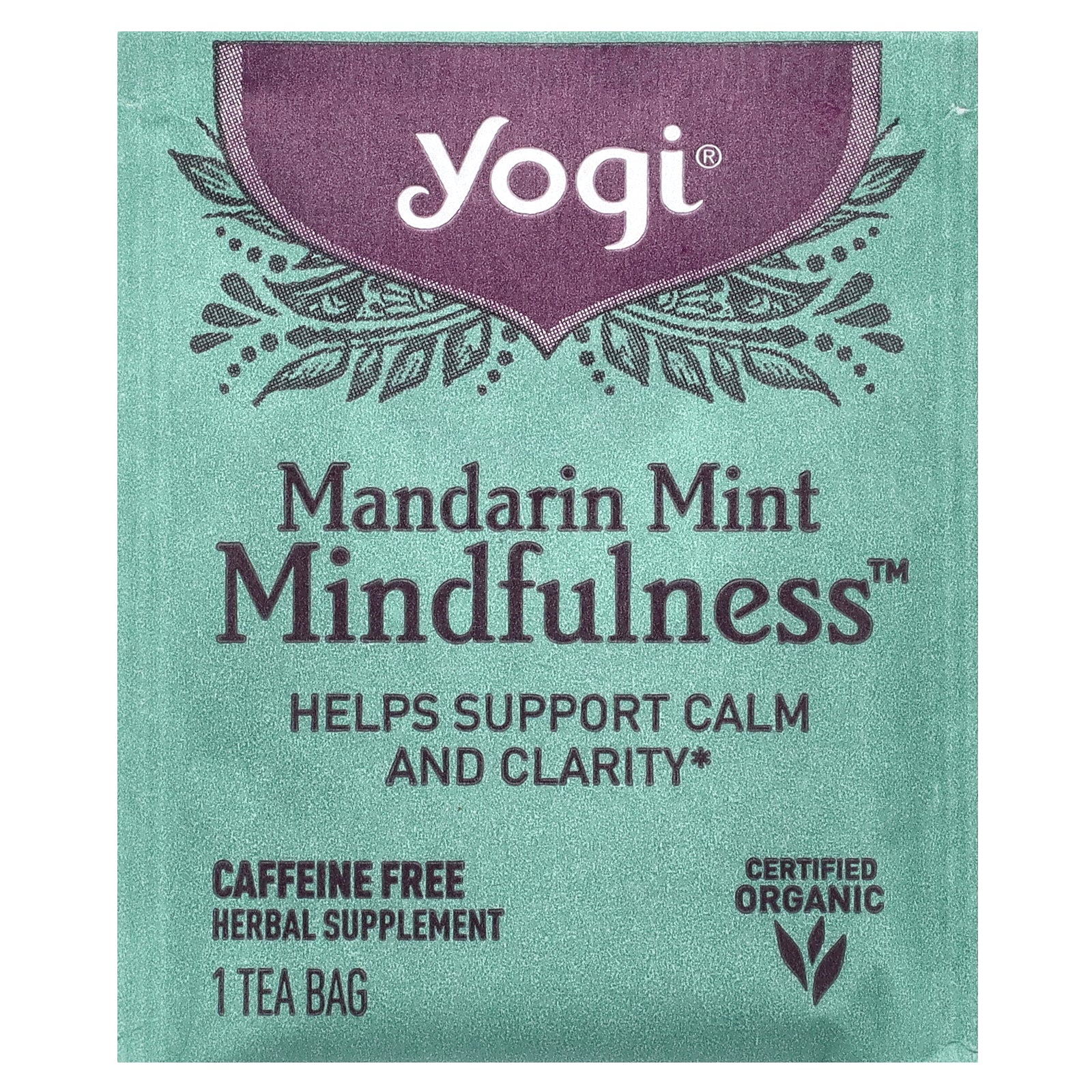 Yogi Mandarin Mint Mindfulness tea combines calming adaptogenic Ashwagandha and Reishi Mushroom, traditionally used to support clarity of mind - a perfect complement to your mindfulness practice. Citrusy Mandarin Oil is blended with lively Peppermint, and naturally sweet Honeybush for a refreshing tea that is sure to leave you saying ahh.