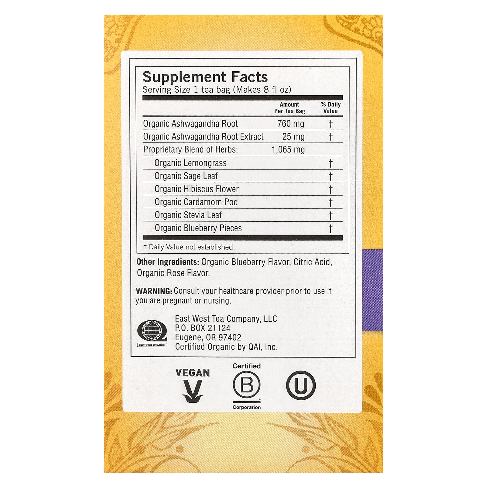 Yogi Blueberry Sage Stress Relief tea combines grounding Ashwagandha, an adaptogenic herb used to support stress response, with fruity Blueberry, herbaceous Sage, and Hibiscus for a deliciously soothing tea. Take some time for yourself and enjoy this delightfully relaxing cup any time of day.