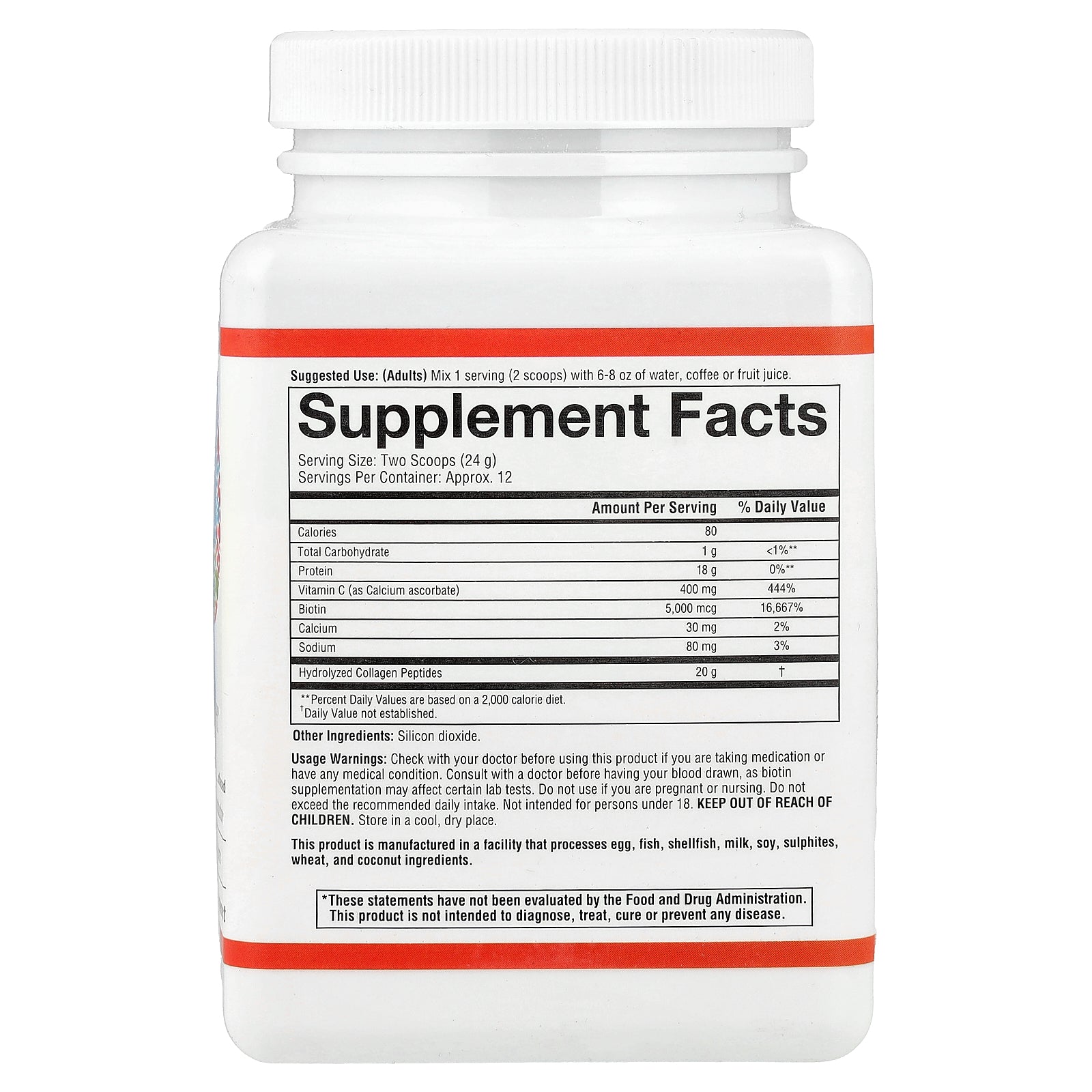 Easy-to-mix, unflavored Youtheory® Collagen Powder helps counteract age- related collagen loss. Collagen is the most abundant protein in the body and helps provide structure for healthy skin, hair, nails and joints. This formula packs a powerful 20 g of highly absorbable collagen peptides per serving, enhanced with biotin and vitamin C to aid internal collagen production.