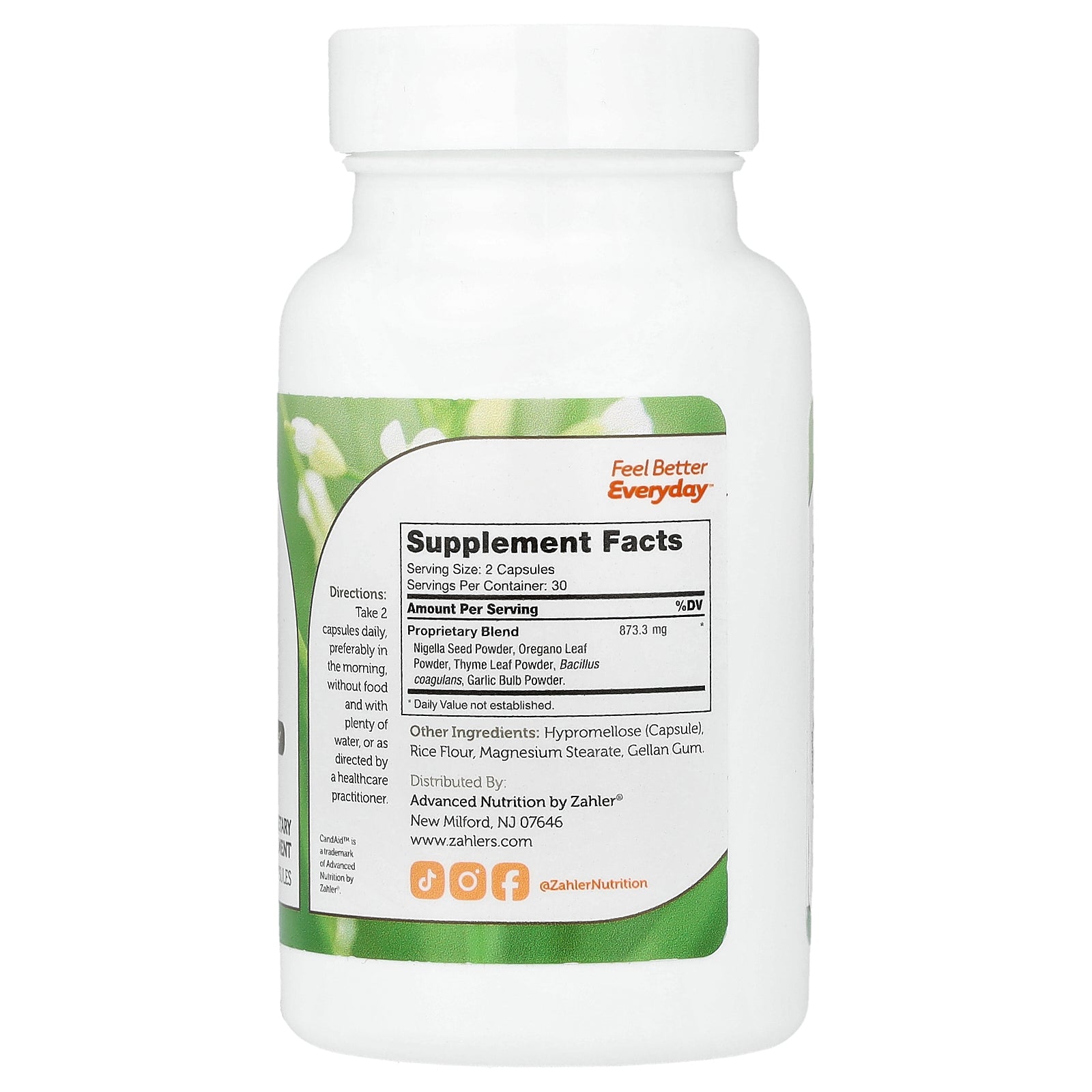 Zahler's CandAid" contains an advanced proprietary blend of well-known botanicals, including Oregano Leaf, Garlic Bulb and more, and is formulated to support intestinal health and yeast balance.