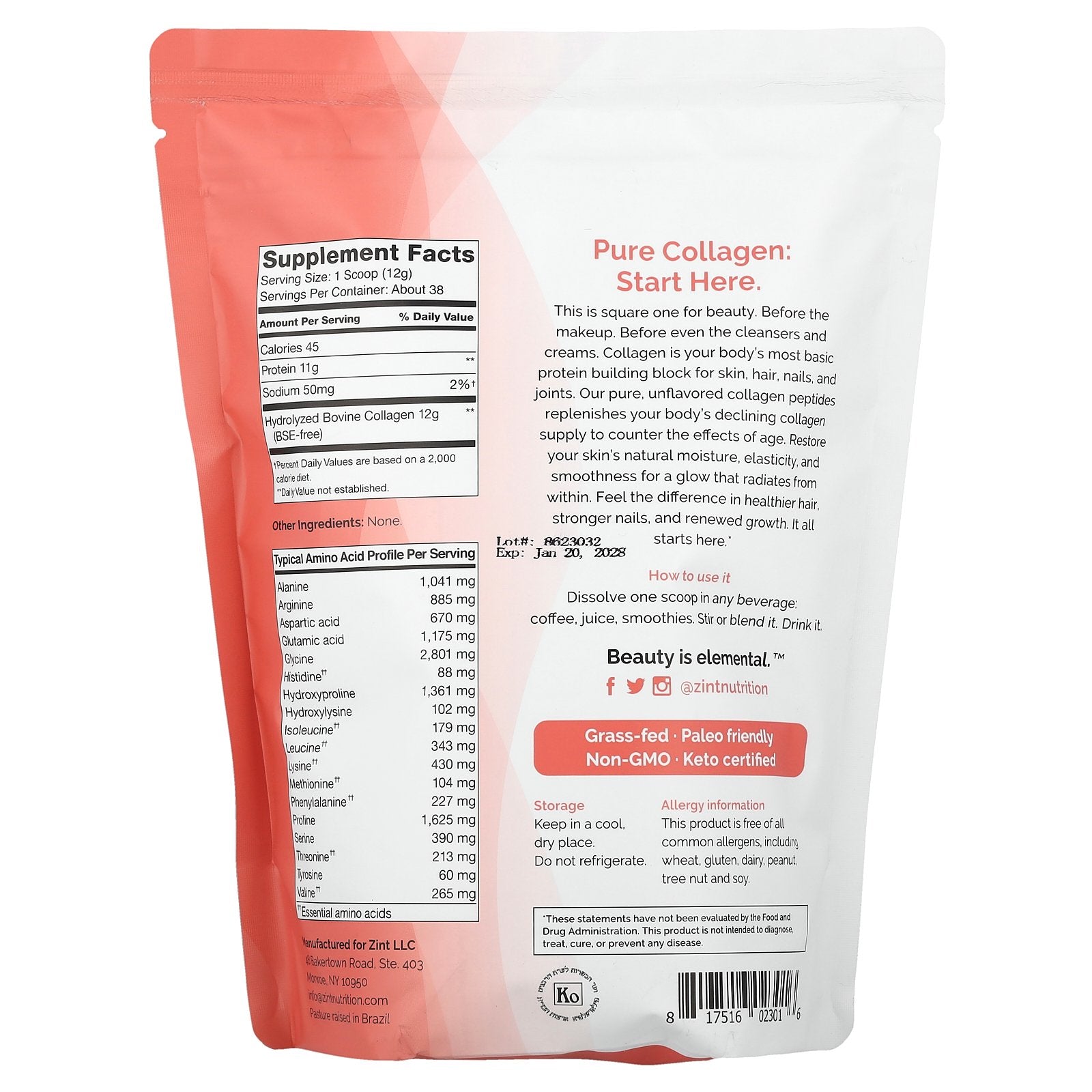 | Hydrolyzed Bovine Collagen (BSE-free) | 12 g | ** |