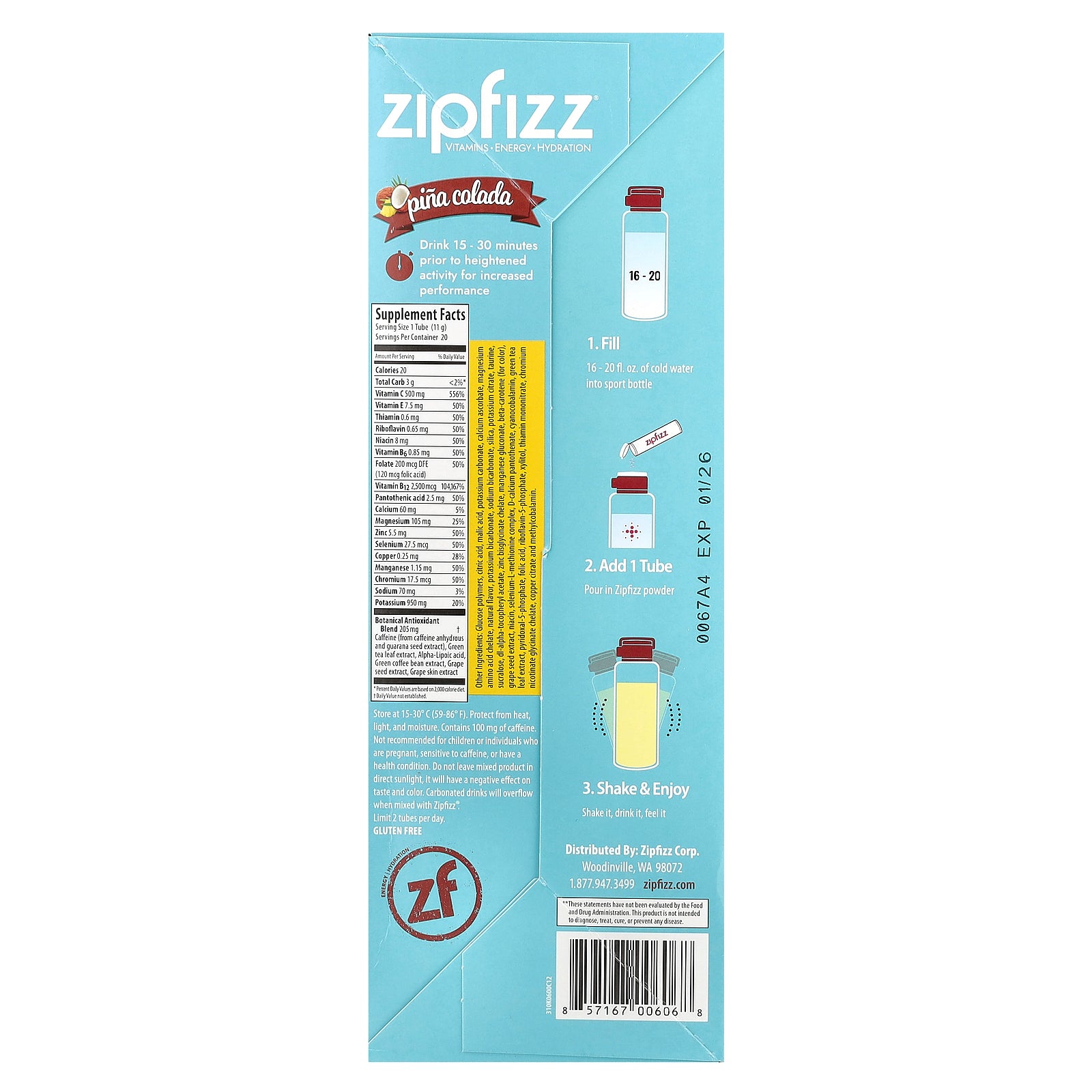 Store at 15-30°C (59-86°F). Protect from heat, light, and moisture. Contains 100 mg of caffeine. Not recommended for children, pregnant women, people sensitive to caffeine, or people with a health condition. Do not leave mixed product in direct sunlight, it will have a negative effect on taste and color. Carbonated drinks will overflow when mixed with Zipfizz®.
