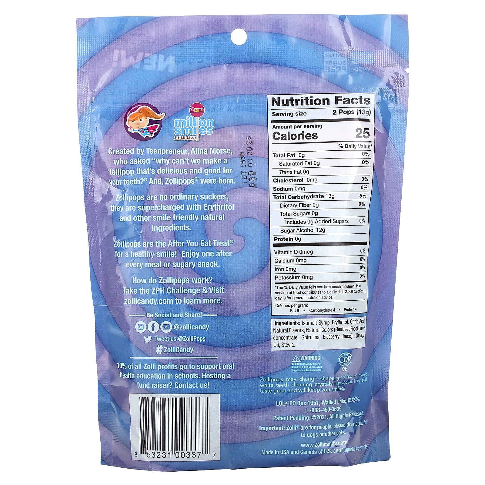 Created by Teenpreneur, Alina Morse, who asked "why can't we make a lollipop that's delicious and good for your teeth?" And, Zollipops® were born.